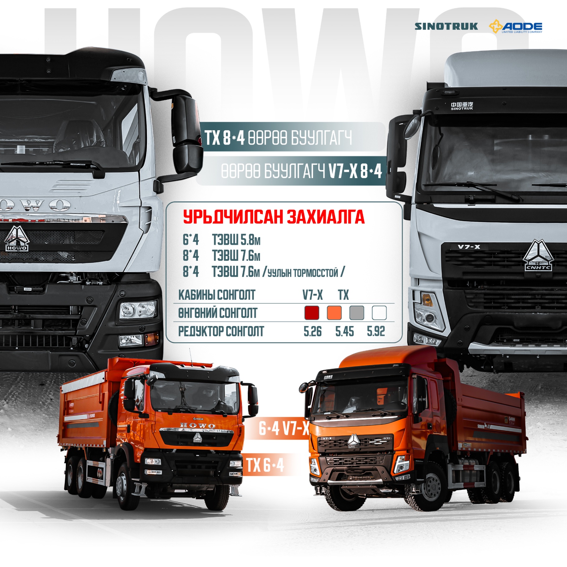 2025 оны цоо шинэ загварын 6*4 болон 8*4 өөрөө буулгагч бэлэн борлуулагдаж байна. Дэлгэрэнгүй мэдээлэл авах бол 70004411