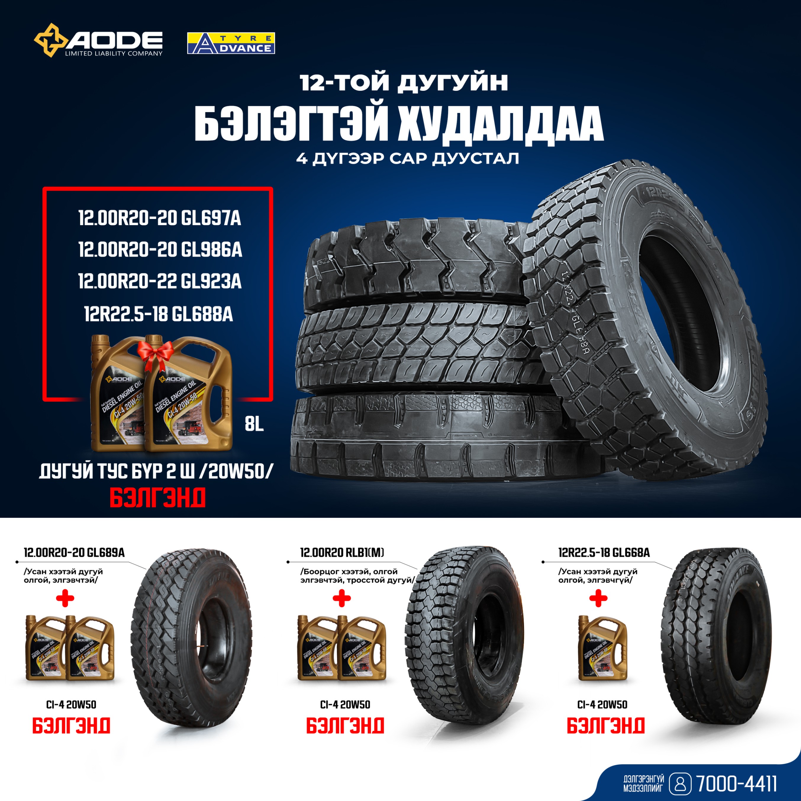 Хүнд даацын дугуйны бэлэгтэй худалдаа эхэллээ12-той дугуй худалдан авалт бүрд (CI-4 20W50 4л) ( CI-4 15w40 4л) (CH-4 10W
